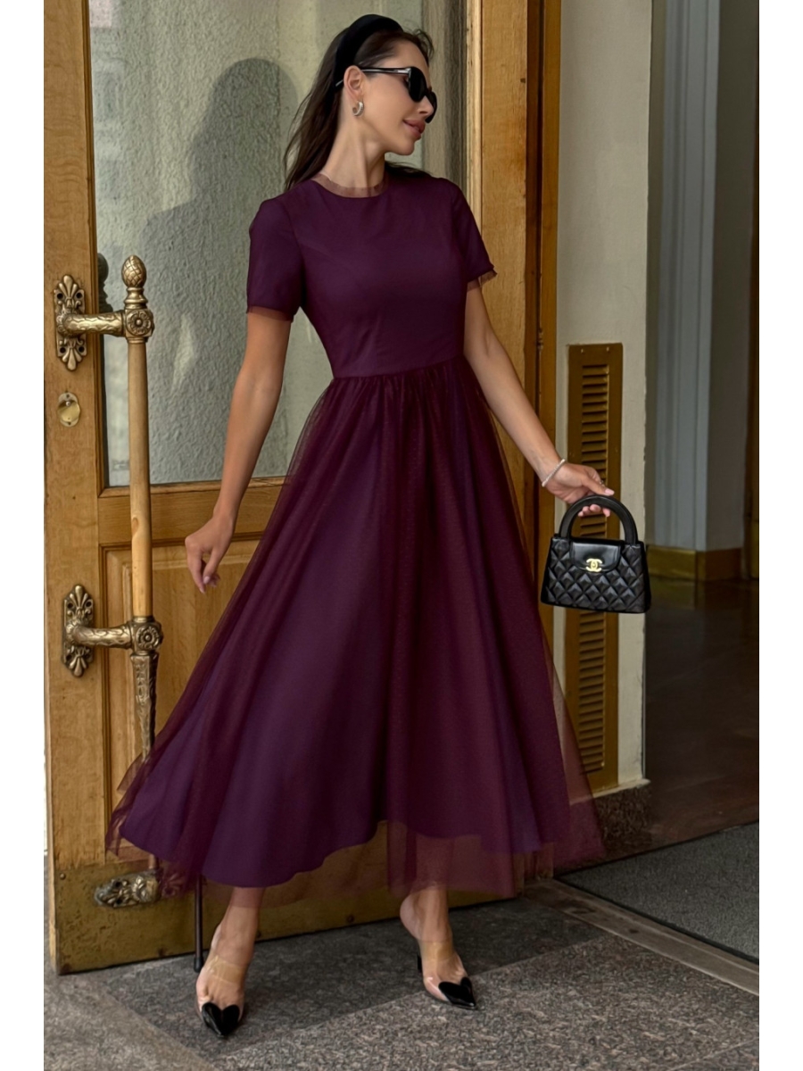 Нарядное вечернее платье из фатина — это идеальный выбор для женщин, которые ищут элегантный образ для торжества, свадьбы, юбилея или праздничного мероприятия. Платье женское, полуприлегающего силуэта, отрезное по линии талии, двухслойное, выполнено из плательной ткани в сочетании с сеткой. Верхний слой из отделочной ткани - сетка, нижний слой из плательной ткани.