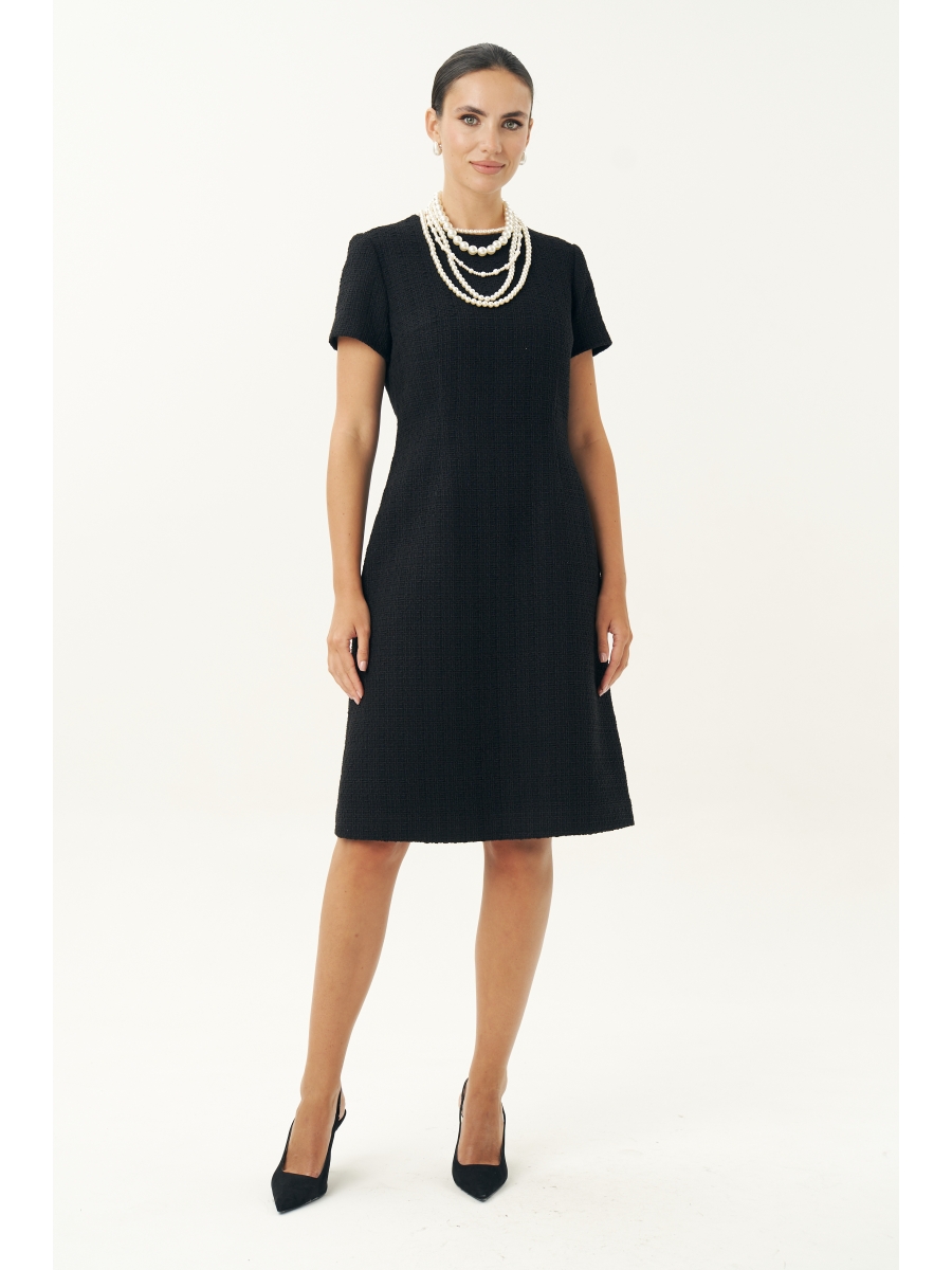 Оформить заказ →Неизменно, черное маленькое платье остается образцом элегантности… Платье женское, выполнено из костюмной твидовой ткани, полуприлегающего силуэта, расширенное к низу, на трикотажной подкладке притачной по низу переда и спинке, по низам рукавов. Платье повседневное. Перед с талиевыми вытачками, с нагрудными вытачками, идущими от боковых швов. Спинка с талиевыми вытачками, со средним швом, в верхней части которого обработана застежка на потайную тесьму-молнию. Рукава втачные, одношовные, короткие. Горловина переда и спинки обтачная, округлая.