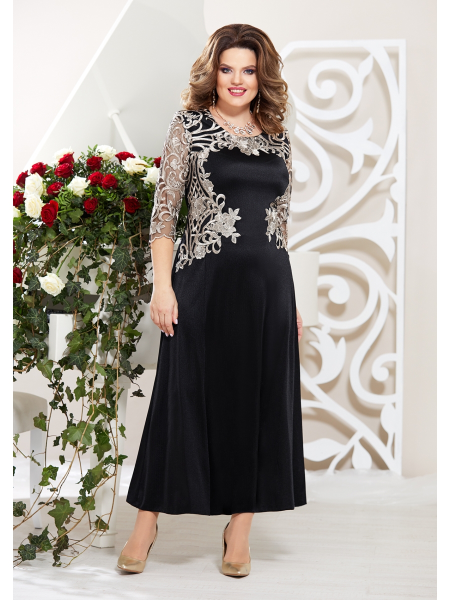 Потрясающее платье и по исполнению, и по характеру! Выразительный рисунок, роскошные цветы на гипюре, использован как нельзя лучше! Платье выполнено из трикотажа с блеском (тянется) и роскошного гипюра. На полочке выполнен фигурный подрез и декорирован аппликацией из гипюра. Рукав выполнен из гипюра, оптимальной длины. Спинка из однотонного текстиля, с средним швом и полу-рельефами, в среднем шве по талии сборка, по низу шлица. За счет своей роскошной длины и легкого расклешения по низу прекрасно подойдет под туфли -лодочки на каблуке!