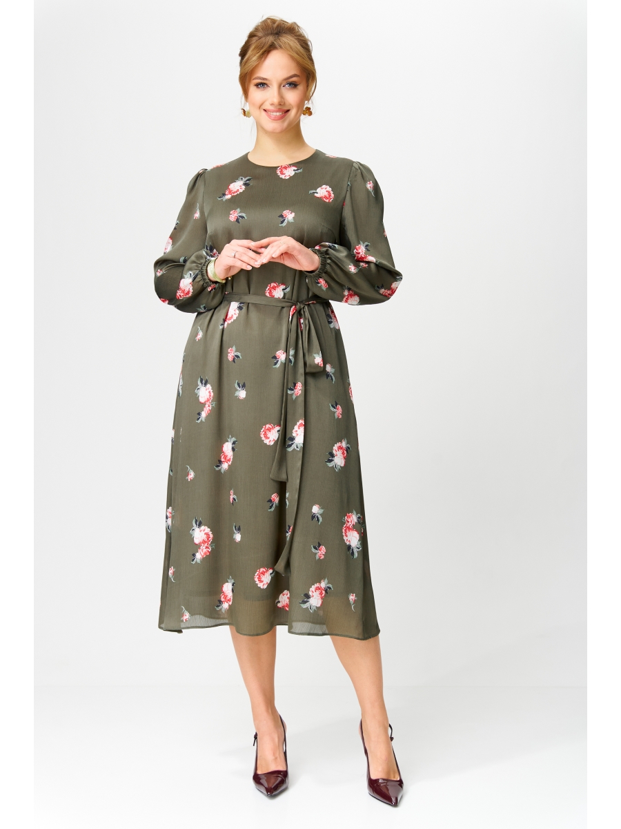 Нарядное платье 5103 олива+бело-красный цветок, GIZART – купить с доставкой в Санкт-петербурге на peterburg.belpodium.ru