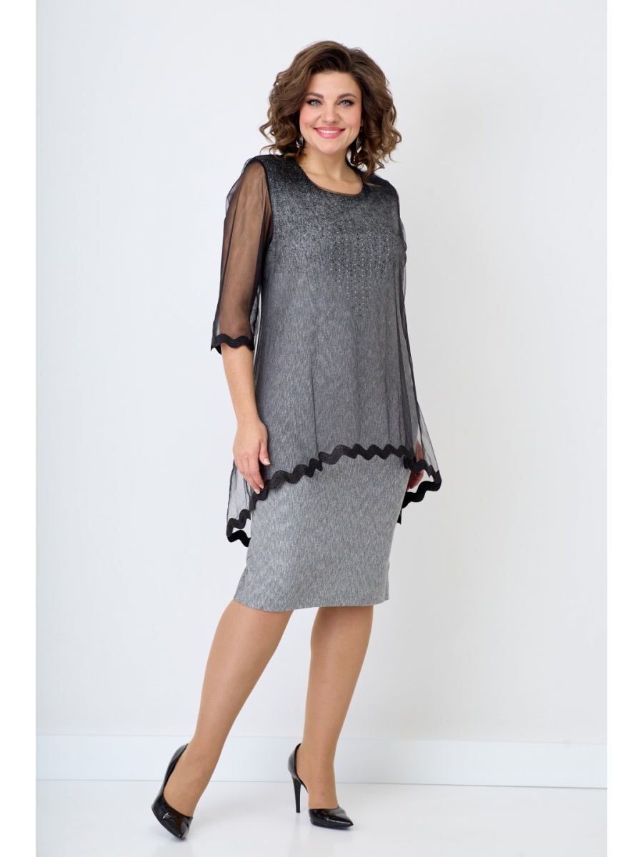 Оформить заказ →Шикарное платье, которое подойдет для любого предстоящего Вам торжества. Платье состоит из двух слоев, сшитых по пройме рукава и горловине. Нижний слой состоит из фактурного трикотажа с люрексом. Имеются вытачки на груди и сзади на талии. Верхнее платье состоит из сетки, а низ его обработан кружевом. (ПРИМЕЧАНИЕ! Кружево может отличаться от оригинала). Спереди верхнее платье короче, сзади длиннее. Рукав 3/4, манжеты состоят из кружева. Платье без застежки.