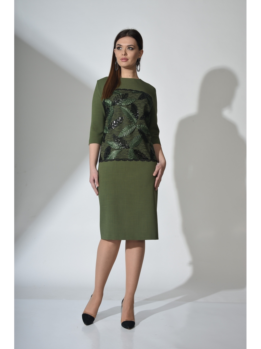 Рост фотомодели в зеленом цвете с длинным рукавом – 174 см.
