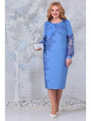 Платье женское, полуприлегающего силуэта, чуть зауженное к низу, на подкладке из дышащей, приятной на ощупь и достаточно эластичной ткани. Длина платья по среднему шву спинки 107см. Детали переда асимметричные. Фигурный подрез переда, направленный слева направо от левой проймы, через центр вниз к правому боковому шву. На правую боковую часть из подкладки нашит гипюр, шов спрятан под нашивной деталью с фестонами и веточками, направленными к центру. На левой части талевая выточка, на правой части нагрудная выточка, выходящая из проймы. Спинка с талевыми выточками, в среднем шве обработана застёжка на потайную тесьму молнию и шлица. Горловина углублённая спереди, обтачная, круглая. Рукава втачные, одношовные, длиной 64рсм. Выше линии локтя горизонтальный подрез, нижняя часть рукава из гипюра, со сборкой по шву притачивания манжеты с застёжкой на петлю пуговицу. Изделие с плечевыми накладками.