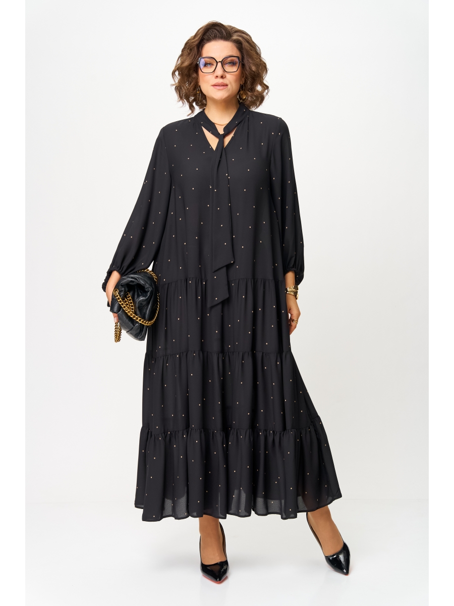Платье макси трапециевидного силуэта — идеально для любого торжественного выхода и не только. Благодаря своей легкости и воздушности подойдет для разных образов. А благодаря своему крою идеально подойдет на любую фигуру. По горловине V-образный вырез и стойка переходящая в бант. Рукав расширенный к низу, на резинке, фигурный. По полочке и спинке идут 3 присобранных волана.