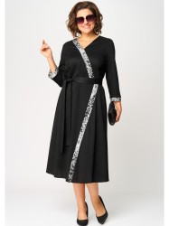 Декором платья служит съёмный пояс и детали из отделочного трикотажа.