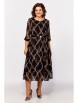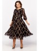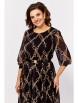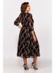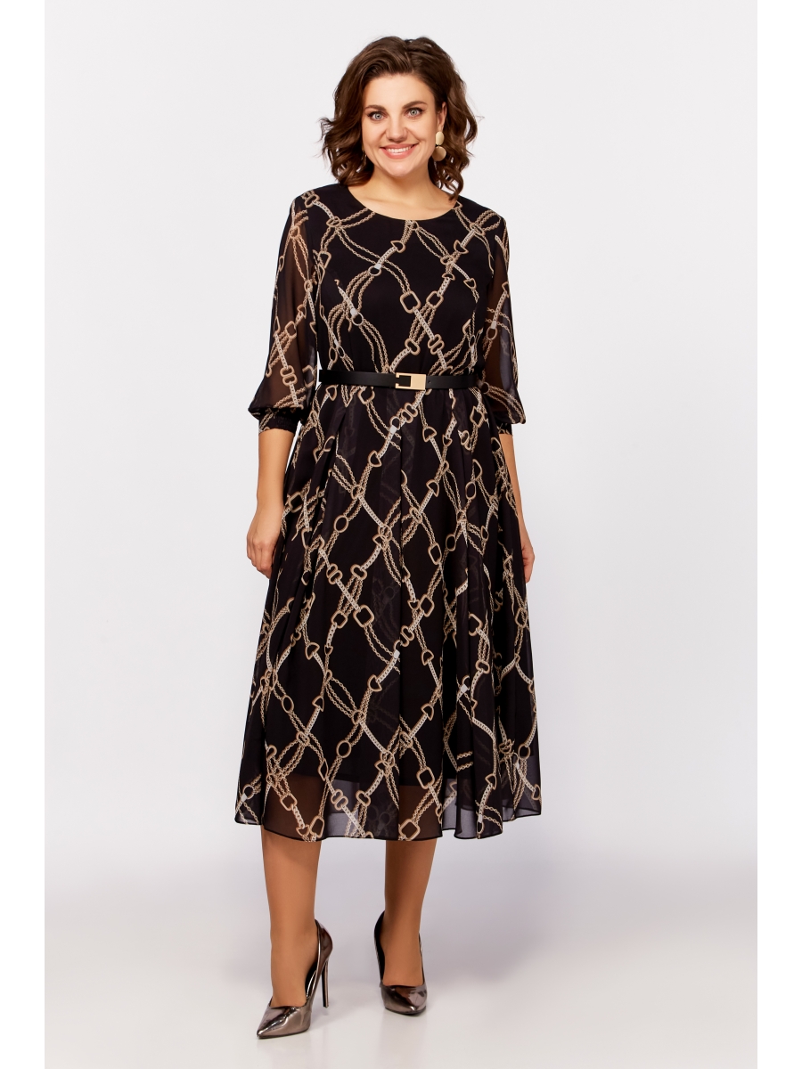 Платье из шифоновой ткани на трикотажной подкладке, Х-образного силуэта с полуприлегающим лифом. Платье отрезное по линии талии. По переду лифа расположены рельефы, по спинке лифа талиевые выточки. Юбка расклешенная из шести клиньев со встречными складками по линии талии. В среднем шве спинки предусмотрена молния. Рукав втачной длиной ¾, по низу манжета с эластичной вставкой.