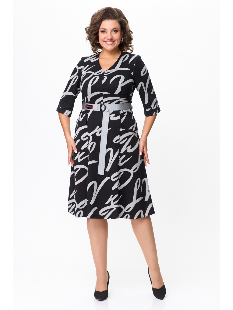 Стильное женское платье. Платье полуприлегающего силуэта, отрезное по линии талии, юбка шестиклинка, расширенная к низу. На уровне бедер карманы с отложенным клапаном. На лифе по переду центральный шов, горловина V-образная. Рукава втачные одношовные с отложной манжетой.