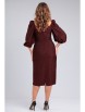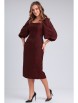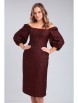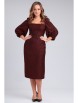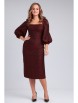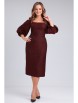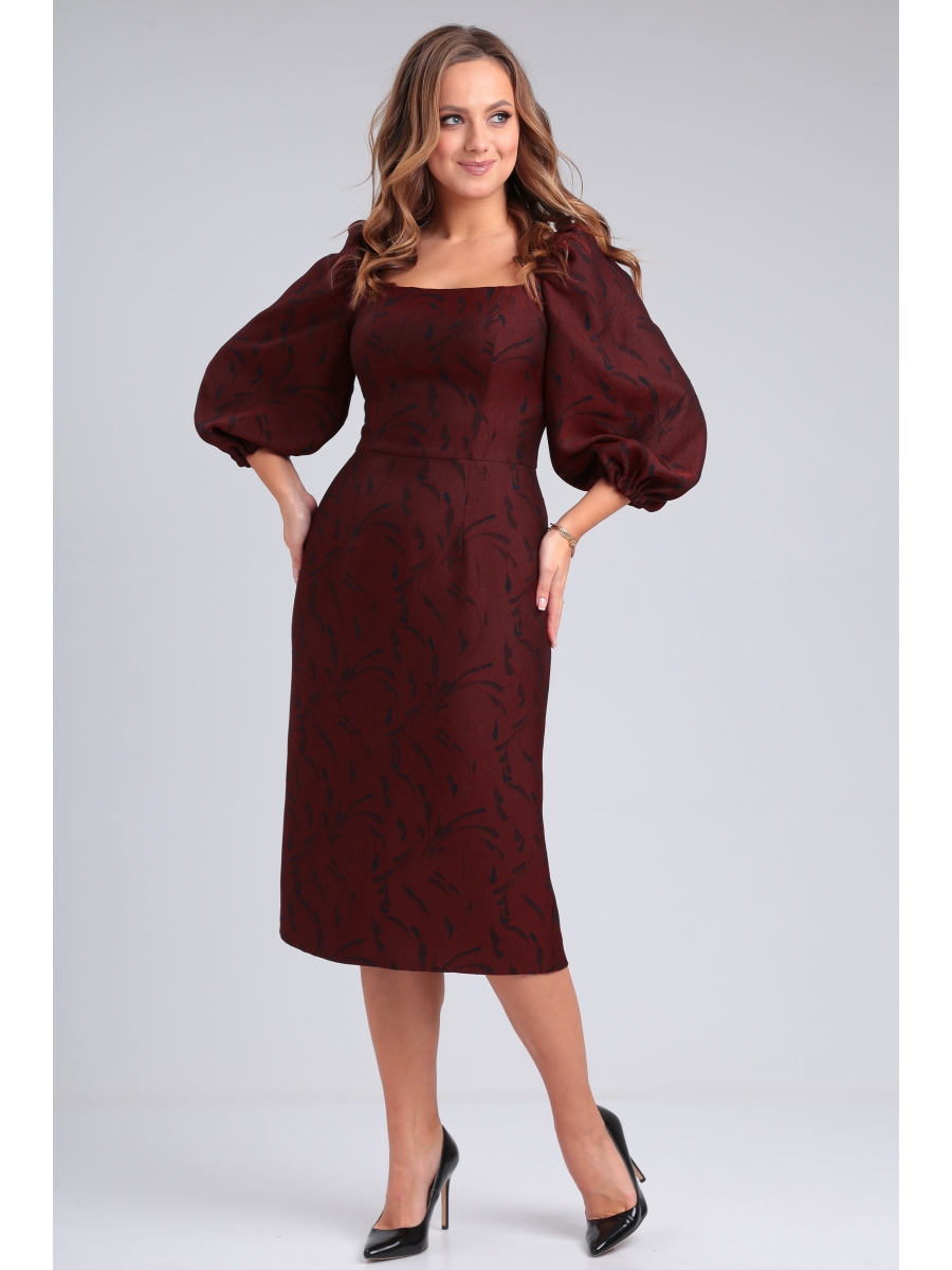 Платье из костюмно-плательной ткани приталенного силуэта длиной чуть ниже колена. Вырез горловины квадратной формы - каре. Отрезное по линии талии. Перед и спинка с рельефами. По спинке средний шов, в котором вставлена потайная молния, внизу разрез. Рукав втачной длиной 3/4, по окату собран на резинку, в нижней части рукава сборка на резинку.
