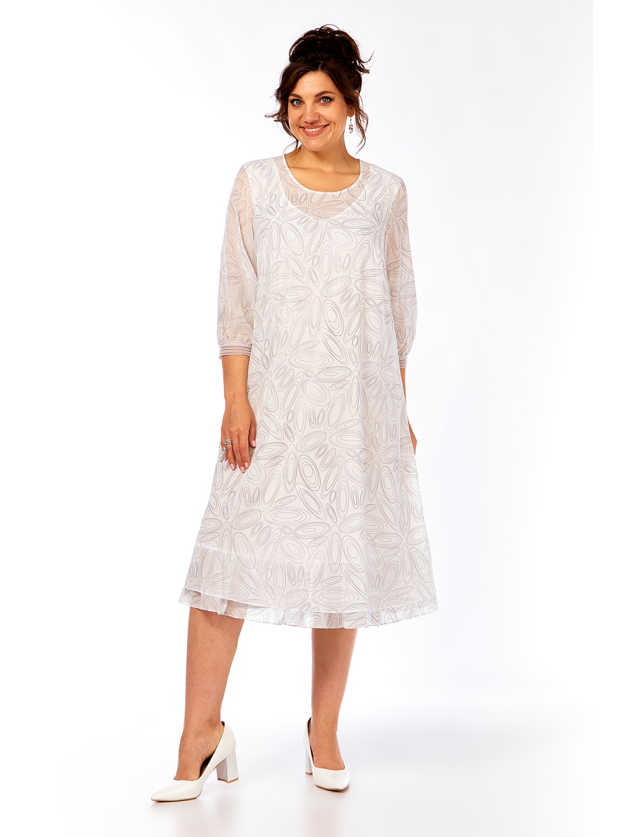 Элегантное платье из шифоновой ткани с оригинальной фактурой ткани. Горловина овальной формы, нагрудные вытачки направлены от бокового шва к центру груди, спинка со средним швом и каплевидной застежкой на пуговице. Низ платья обрамляет волан, наполняя образ воздушной многослойностью. Рукав втачной, одношовный, низ рукава собран на эластичную декоративную тесьму. Платье на трикотажной подкладке. Нарядное платье, в котором Вы будете выглядеть женственно и романтично. К платью прилагается съемный пояс.