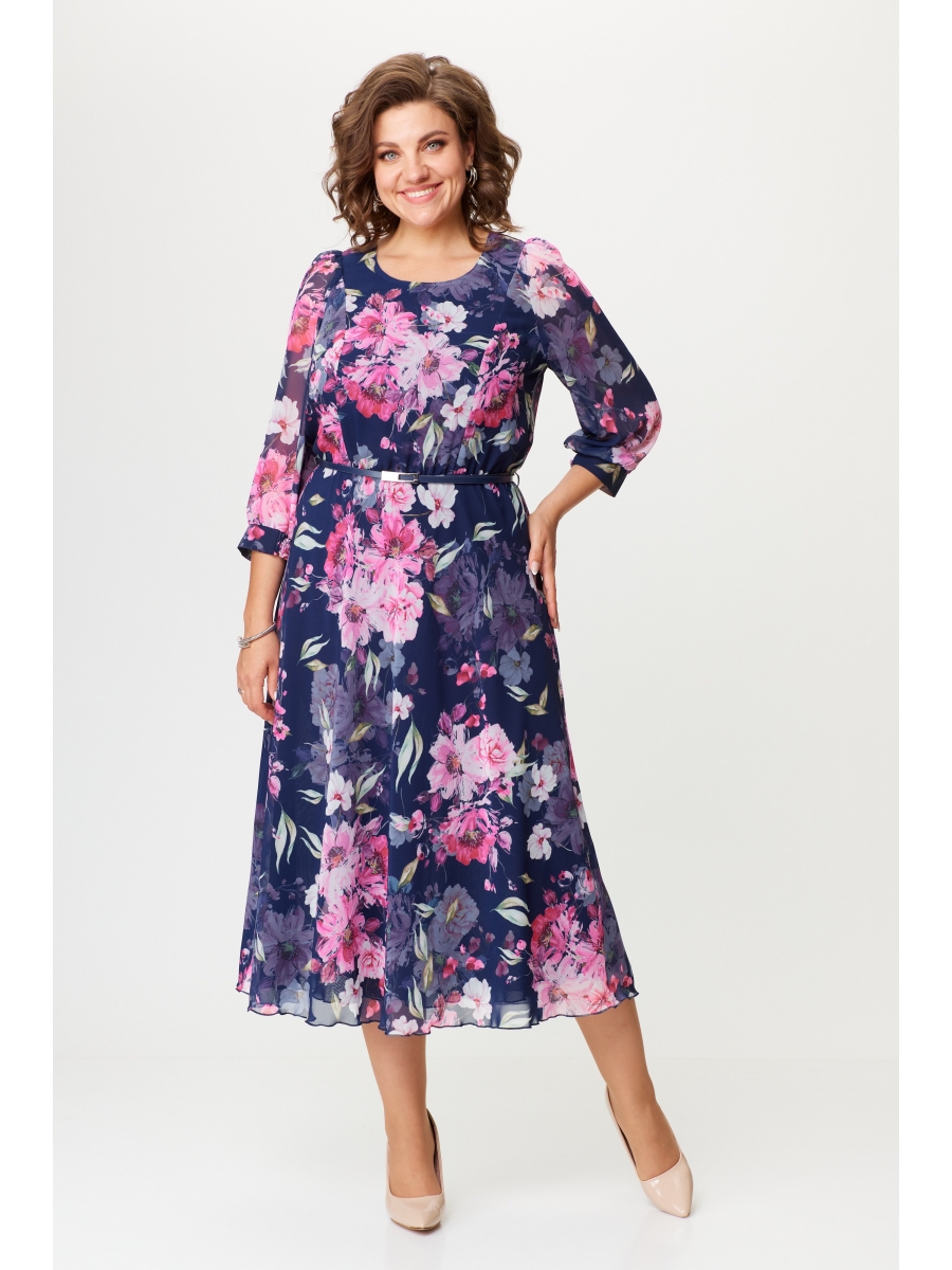 Платье выполнено из шифона на шифоновой подкладке. Платье отрезное по линии талии, юбка покроя "по косой", лиф с рельефными швами по переду и круглым вырезом горловины. Рукав втачной длиной 3/4, комбинированного покроя, линия плеча укорочена. Низ рукава на манжете с эластичной вставкой. Талия на резинке.