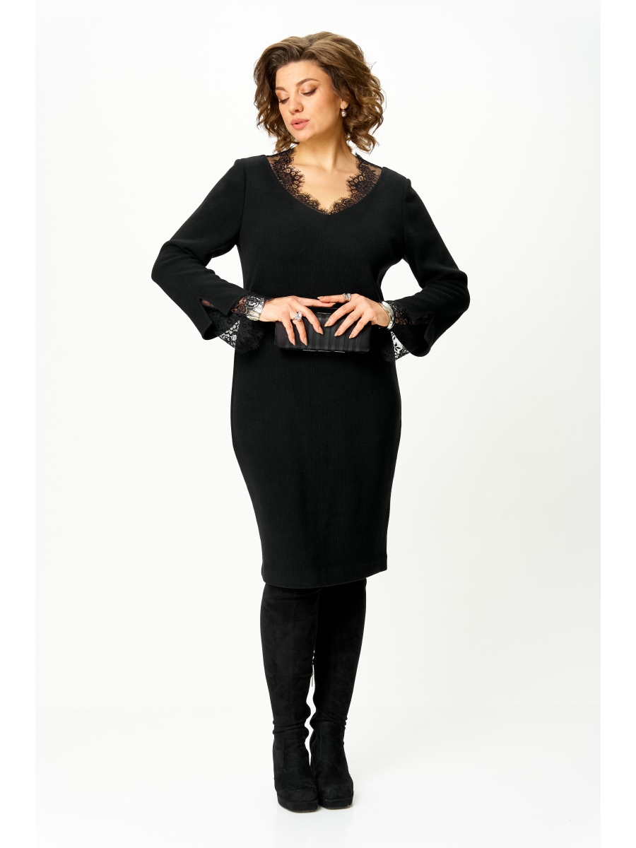 Платье выполнено из мягкого пластичного трикотажа. Платье подчеркивает талию и плавно облегающие бедра. По горловине платья выполнена отделка из качественного кружева-гипюр. Также кружево используется на манжете, которая частично прикрывает кисть. Это платье - идеальный компаньон для создания атмосферного, целостного образа. Оно говорит о тонком вкусе своей обладательницы, умеющей сочетать комфорт и утонченной романтикой.
