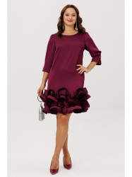 Нарядное платье полуприлегающего силуэта, выполненное из струящегося шелка «Армани» (немного тянется), без подкладки. По переду нагрудные вытачки. По спинке средний шов с застежкой на навесную петлю-пуговицу. Горловина округлой формы. Рукава втачные одношовные со сборкой по окату, встречной складкой и отделочной пуговицей по низу. Низ платья оформлен двумя присборенными воланами, края которых обработаны специальной тесьмой для придания формы изгибов воланам (тесьма мягкая, подвижная).