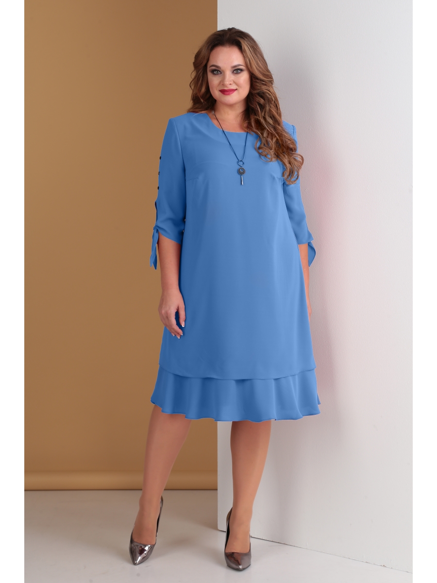 Нарядное платье А-силуэта, на трикотажной подкладке. Выполнено из стрейчевой плательно-костюмной ткани, которая легко струится. Такой наряд подойдёт для любых торжественных мероприятий. Перед платья с нагрудными вытачками. Спинка со средним швом. Рукав втачной, с вертикальным швом и завязывающимися концами. Низ подкладки обработан воланом.