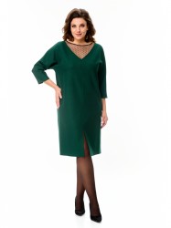 Платье прямого силуэта зауженное к низу с разрезом по переду. Манящее декольте закрыто декоративной полупрозрачной сеткой. Рукав 3/4 цельнокроеный зауженный. Платье без подкладки.