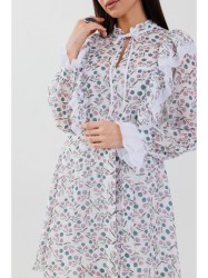Платье из принтованного шифона с отделкой из ткани компаньона.