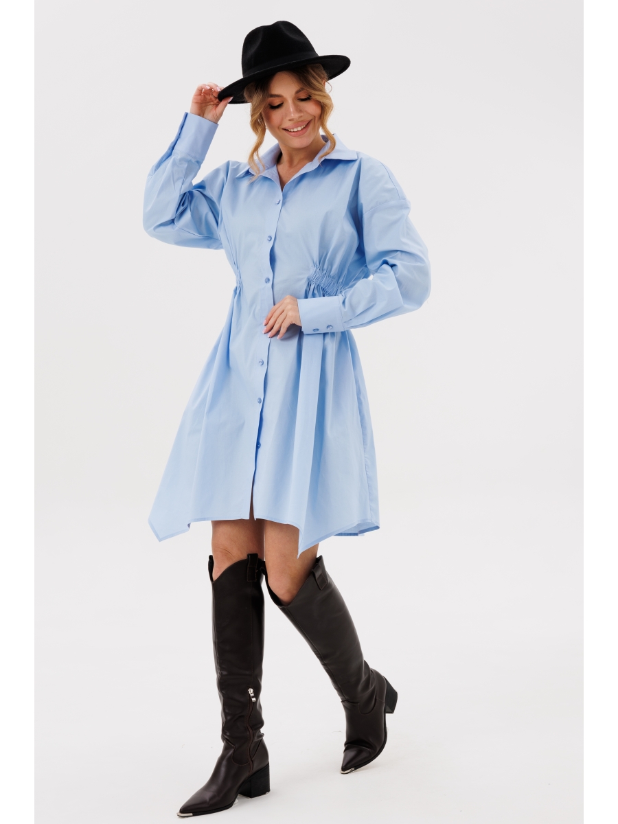 Платье женское А-силуэта приталенное за счет резинки на кулисе. Рукав длинный на манжете. Низ фигурный.