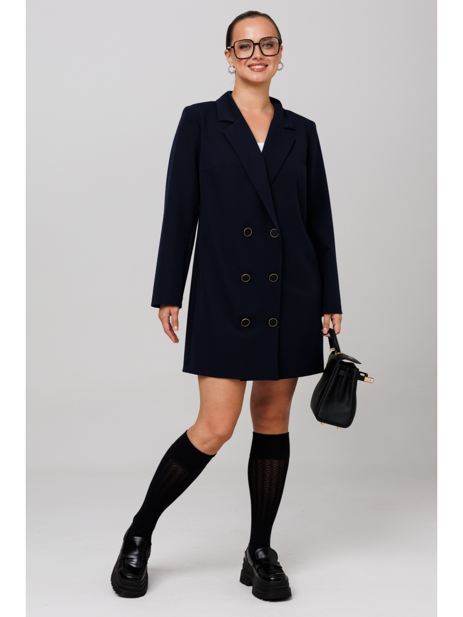 Создайте свой неповторимый образ с этим стильным женским платьем-пиджаком от Anastasia! Оно имеет удивительно комфортный оверсайз крой, который скроет все недостатки фигуры. Пуговки служат элементом, придающим модели оригинальность. Платье-пиджак женское полуприлегающего силуэта. Застежка двубортная на петли и пуговицы. Воротник пиджачного типа. Приталивание создается за счет бочка по полочке и спинке. Рукав вточной, двух шовный. Темно-синий цвет делает это платье универсальным. Оно подойдет как для повседневной работы в офисе, так и для особых случаев. А так же, как взрослым женщинам, так и подросткам как школьная форма.