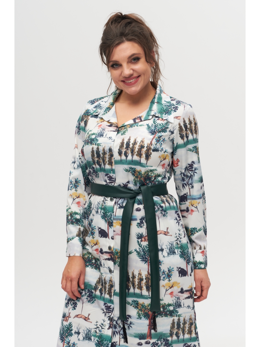 Платье-рубашка женское полуприлегающего силуэта, длинное. Рукав втачной, длинный, низ на манжете. По переду планка на петли пуговицы на всю длину платья. В боковых швах разрезы и карманы на уровне бедер. Горловина обработана воротником со стойкой. Дополнительно подчеркнуть талию можно при помощи съемного пояса. Данное изделия может быть, как отдельным платьем, так и быть частью вашего образа в качестве рубашки.