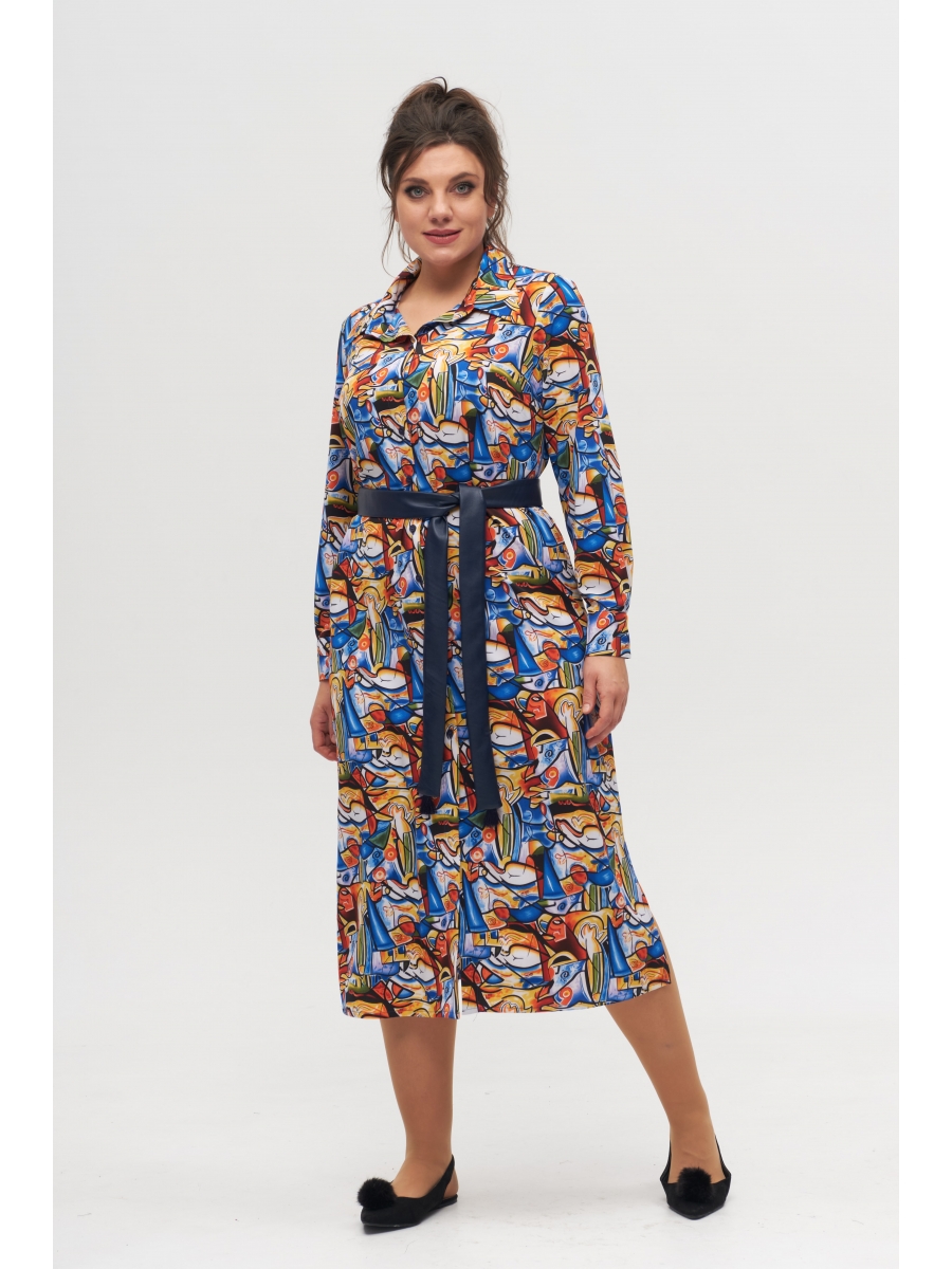 Платье-рубашка женское полуприлегающего силуэта, длинное. Рукав втачной, длинный, низ на манжете. По переду планка на петли пуговицы на всю длину платья. В боковых швах разрезы и карманы на уровне бедер. Горловина обработана воротником со стойкой. Дополнительно подчеркнуть талию можно при помощи съемного пояса. Данное изделия может быть, как отдельным платьем, так и быть частью вашего образа в качестве рубашки.