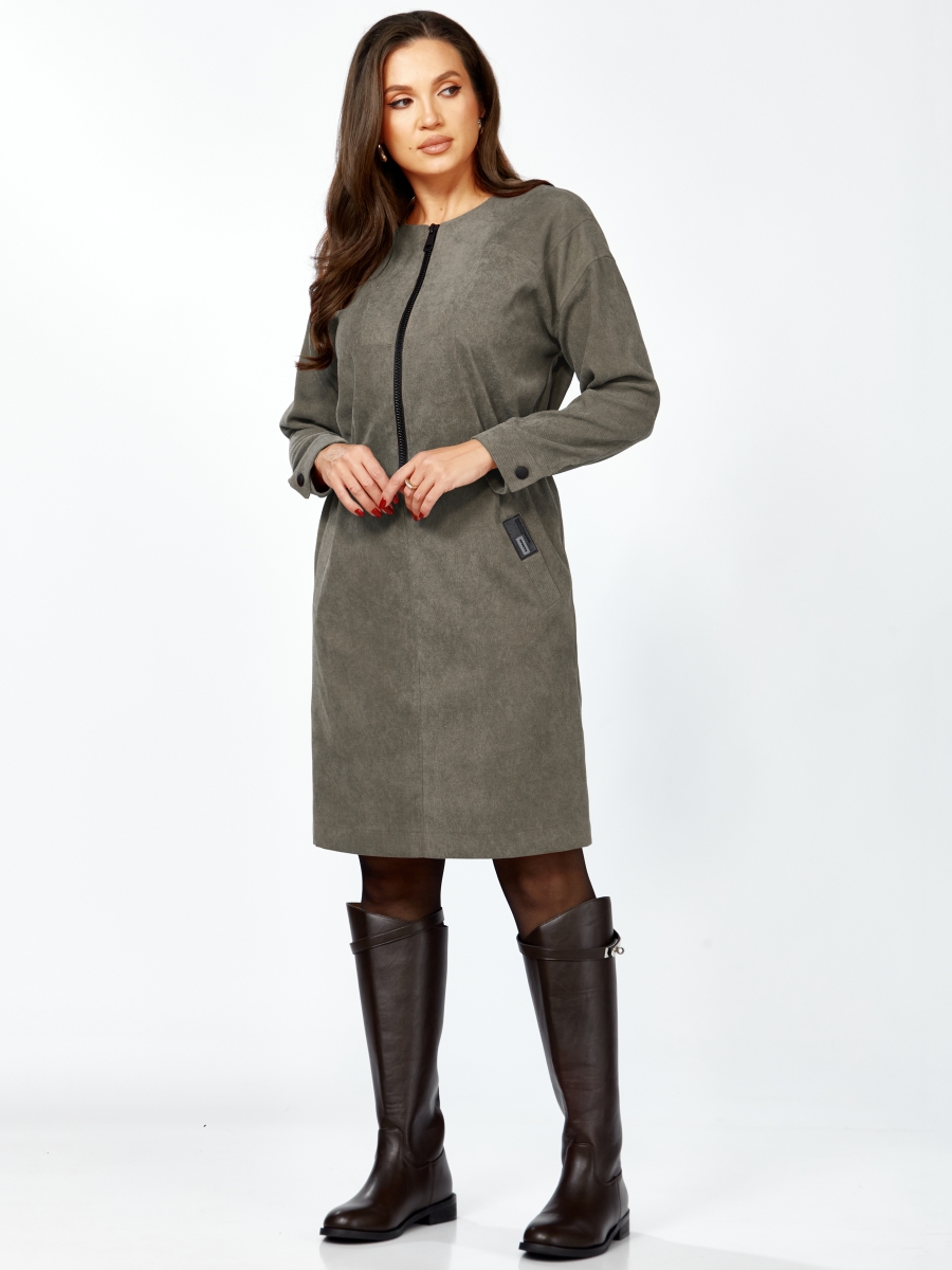 Оформить заказ →Платье полуприлегающего силуэта из мягкой, комфортной штруксовой ткани. Рукав спущенный, длинный, на манжете с застёжкой на 1 петлю и 1 пуговицу, разрезом. Горловина круглая, застёжка на тесьму-молнию контрастного цвета до талии. По талии подрез, по бокам спереди вставлена резинка, верхняя часть платья имитирует бомбер. Карманы - наклонные листочки, расположены на уровне бёдер по переднему полотнищу юбки, на левой листочке настрочена нашивка контрастного цвета. Перед платья с декоративными подрезами и отстрочкой. Спинка отрезная по талии, на резинке, со средним швом и разрезом по низу.