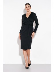 Женское платье на запах длины миди полуприлегающего силуэта со втачными рукавами и V-образным вырезом горловины. Изделие выполнено из мягкого высококачественного полотна с содержанием вискозы. Ткань не скатывается и не деформируется при правильном уходе.