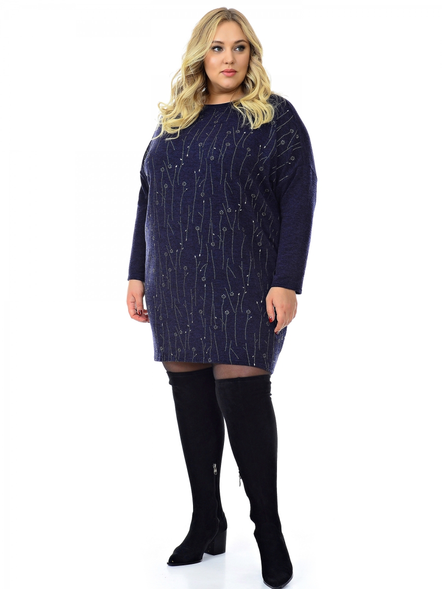 Платье выполнено из нового артикула джерси, имитирующего ангору. Передняя часть платья из ткани-компаньона с золотистым напылением.