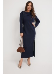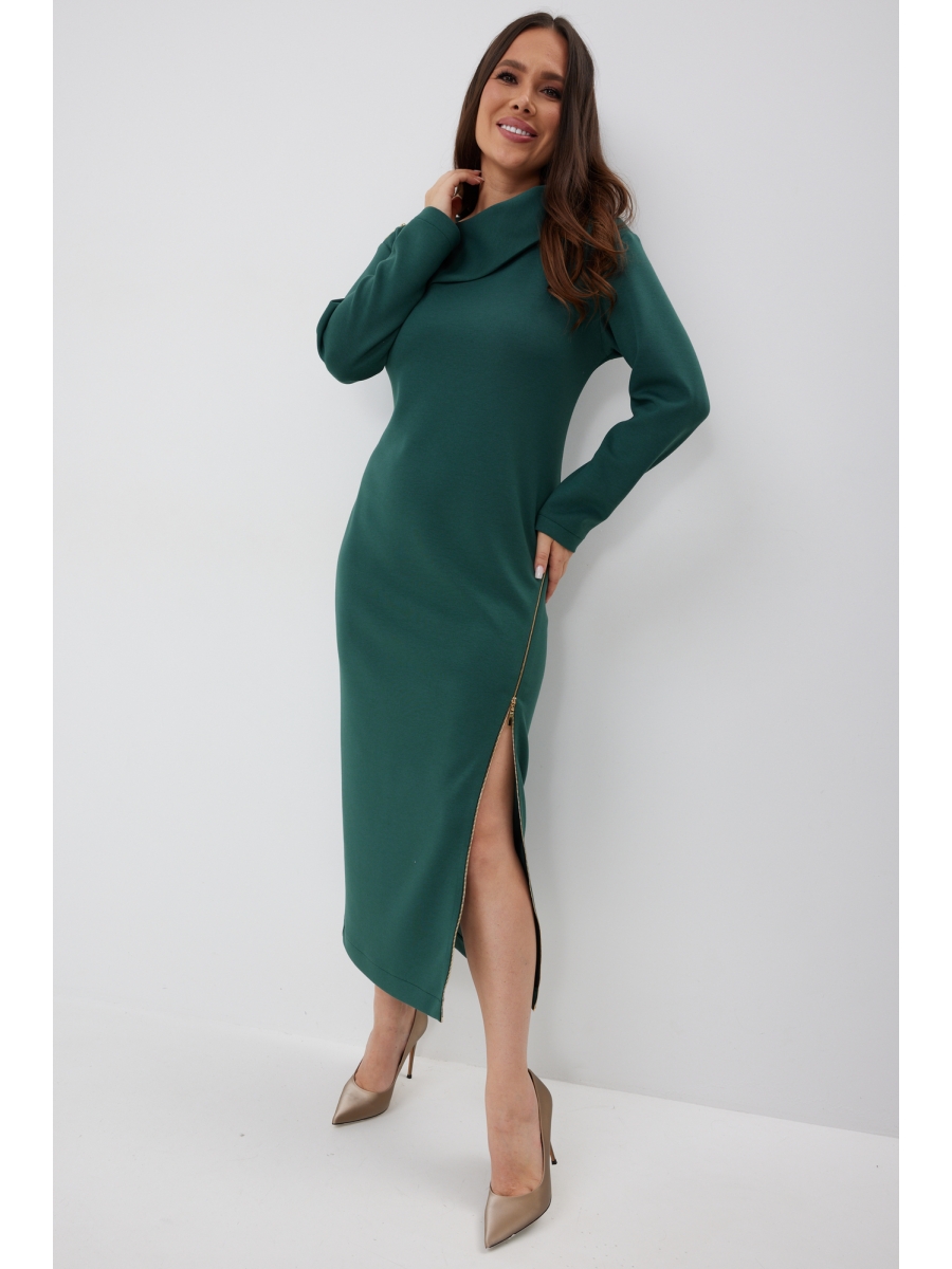 Элегантное и стильное платье миди полуприлегающего силуэта. Выполнено из приятного к телу комфортного гладкого трикотажного полотна. Рукав втачной, полной длины. Украшением платья являются функциональные тесьмы молнии. С их помощью можно стильно уложить воротник и отрегулировать вырез платья. Из лаконичного базового платье легко трансформируется в стильное и сексуальное.