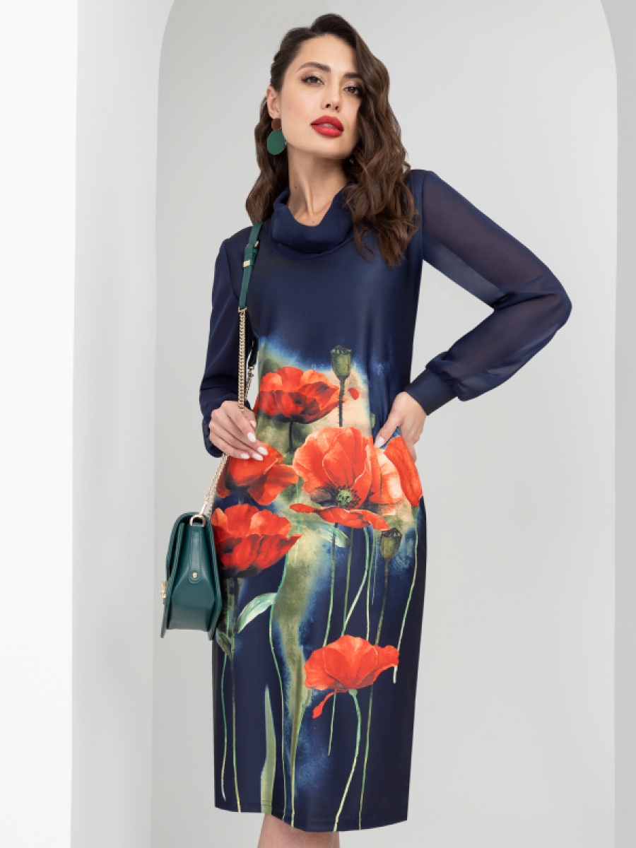 Ах, вот это роскошь! Вот это принт! Вы - настоящая императрица в таком ярком и сочном наряде. Синий с маками смотрится супер! Шифоновый воротник-хомут и рукава придают образу лёгкости и праздничного настроения.