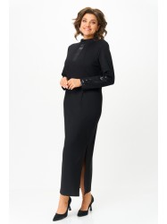 Оформить заказ →Платье женское прямого силуэта длины миди, с втачным рукавом. Горловина с цельнокроеным воротником стойкой. По горловине и талии вытачки. По переду декоративная планка. Рукав длинный с декоративной планкой из пайеток. По спинке средний шов и потайная застежка молния. В левом боковом шве разрез.