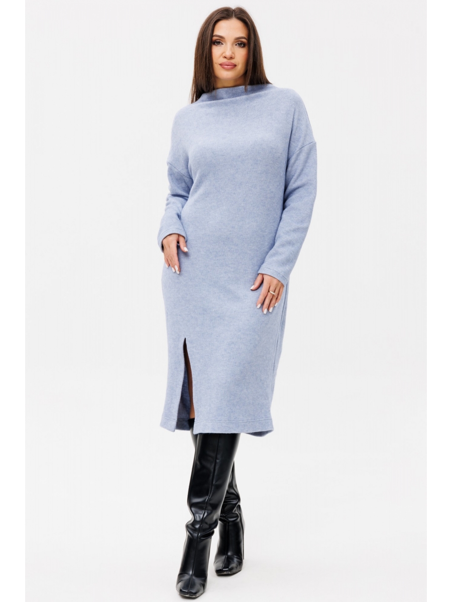Стильное трикотажное платье Ma Сhérie свободного силуэта длиной миди. Горловина цельнокроеная стойка, обработана обтачкой. Перед цельный, снизу выполнен разрез. Спинка со средним швом. Рукав длинный одношовный, линия плеча спущена.