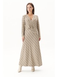 Модное платье - настоящее спасение для нерешительных. Не надо думать, что с чем сочетать, просто надевай его и выгляди не просто привлекательно, но и актуально. Мега удобное трикотажное платье в актуальную полоску. Полуприлегающий силуэт, втачной покрой. Полочка с отрезным лифом, сложным запахом и отделочной деталью. Спинка с отрезным лифом. Юбка в диагональном направлении, что придаёт модели дополнительную пластичность.