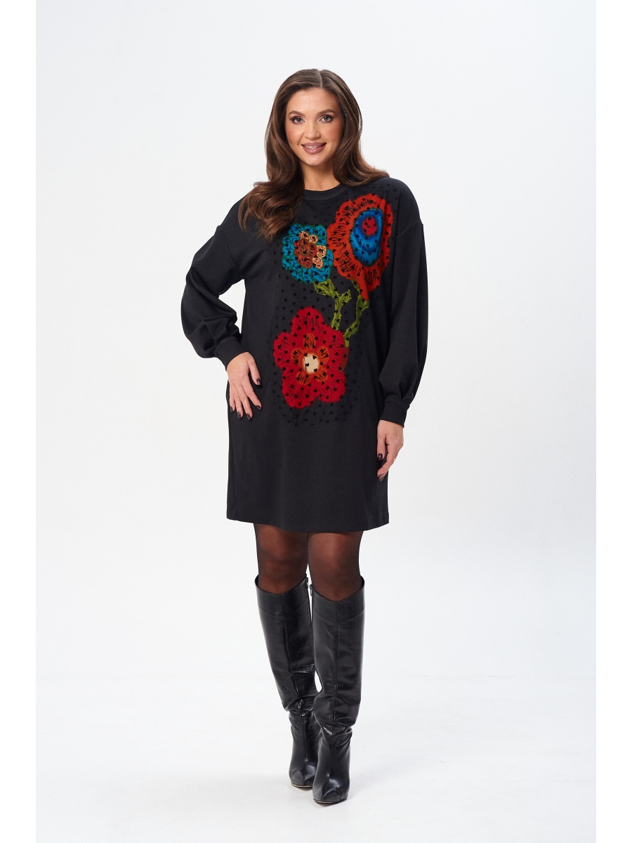 Оформить заказ →Платье (туника) свободного силуэта из трикотажной ткани с принтом. Рукав втачной одношовный со складками по низу и манжетой. Горловина обработана планкой. По переду поверх принта настрочена сетка. Сетка может быть заменена с сохранением художественного образа изделия.