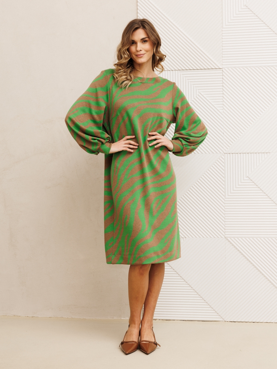 Платье 7385-1 бежево-черный тигр от GIZART выполнено из плотного трикотажа, что обеспечивает комфорт и долговечность. Коллекция бренда сочетает стиль и удобство, предлагая платье с прямым силуэтом и длиной миди, идеально подходящее для осенне-зимнего сезона. Оригинальный тигриный принт создает эффектный образ, привлекая внимание. Декоративные складки на манжете придают изысканность, а горловина в виде лодочки подчеркивает женственность. Этот предмет гардероба универсален: его можно носить ежедневно или же выбрать в качестве офисного наряда. Бежево-зеленая цветовая гамма легко комбинируется с аксессуарами, позволяя создавать разнообразные образы.