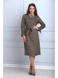 Платье полуприлегающего силуэта, отрезное по линии талии, вырез горловины V-образный, втачной рукав, нижняя часть платья впереди с запахом.