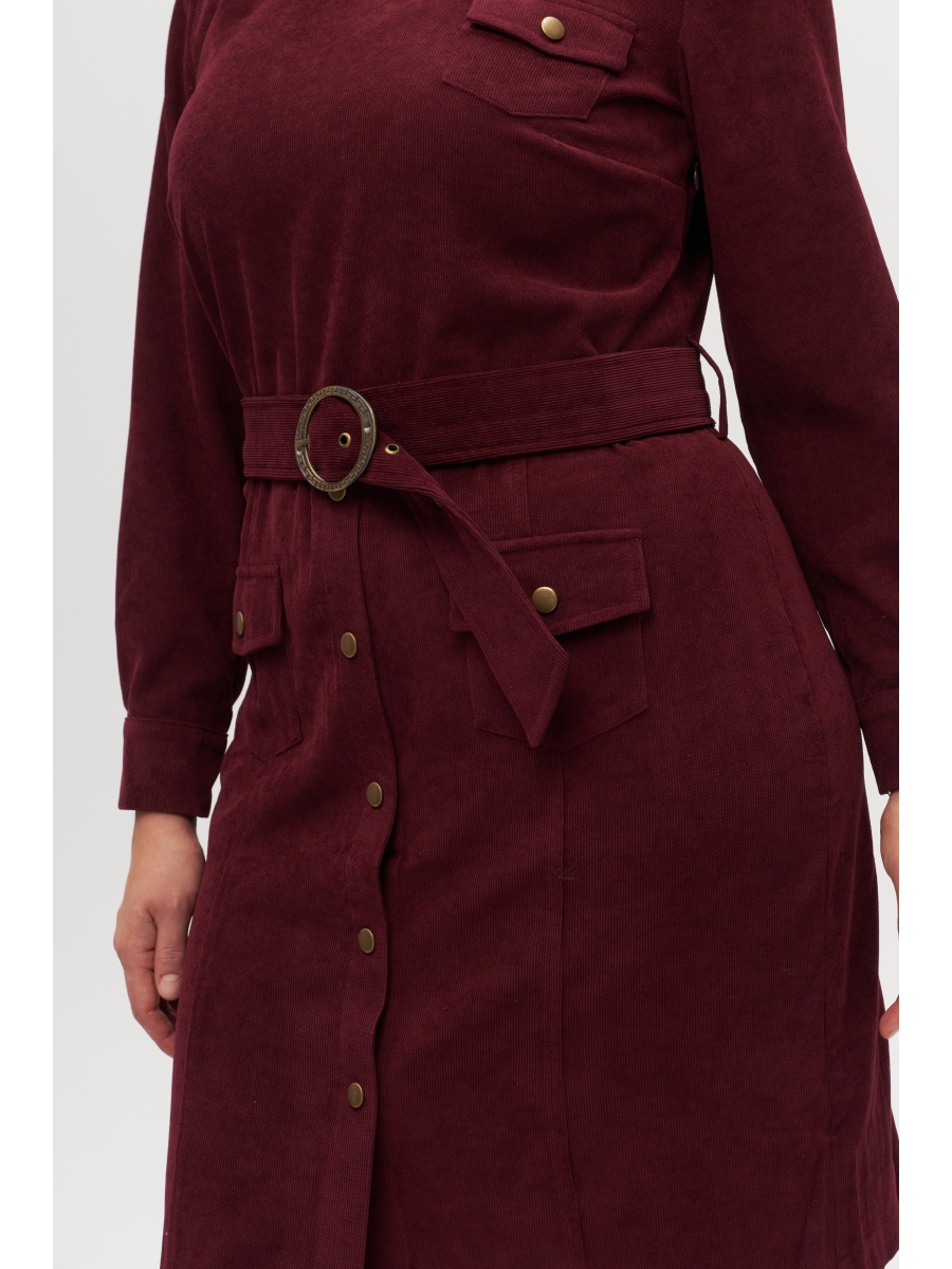 Платье глубокого базальтового оттенка для вашего актуального образа из штруксовой ткани! Платье полуприлегающего силуэта, умеренной длины ниже колена, отрезное по линии талии. На передних частях лифа обработаны нагрудные вытачки, низ платья выполнен с вертикальными рельефами, декоративной планкой с петлями и пуговицами. На лифе и нижней части платья обработаны накладные карманы с клапанами. Спинка с отрезной кокеткой, на нижней части платья выполнены рельефы. Рукав втачной, рубашечного типа, на притачной манжете. Линия горловины округлая. По швам выполнена отстрочка. Для удобства в боковом шве обработана потайная застежка-молния.