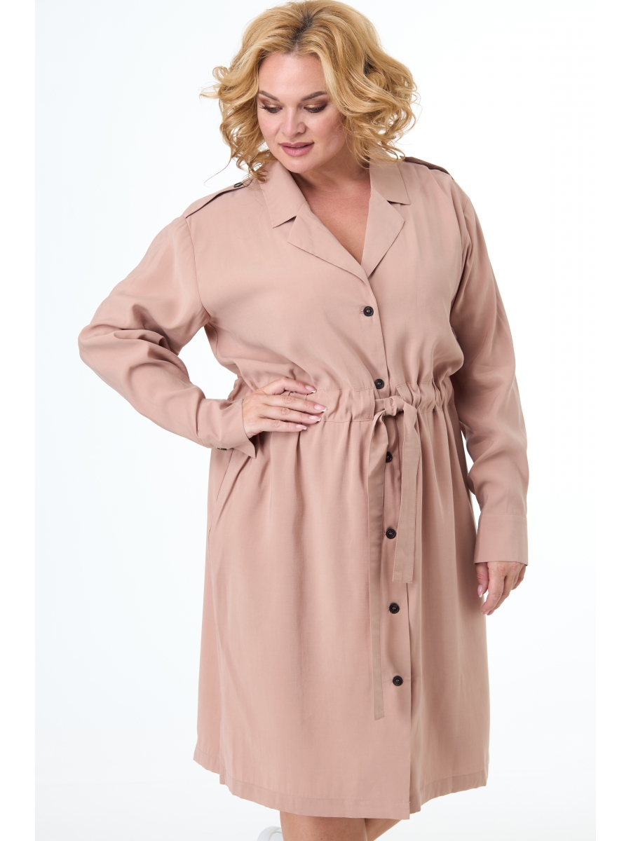 Платье красивого оттенка прекрасно дополнит ваш гардероб! Платье полуприлегающего силуэта средней длины, с кулиской по линии талии и завязывающимся поясом. Английский воротник с лацканами, центральная застёжка на петли и пуговицы. В боковых швах обработаны карманы. На спинке притачные кокетки, по шву притачивания кокетки заложена складка на свободу движения. Линия плеча немного спущена, рукав рубашечного типа, на притачной манжете с застёжкой на петлю и пуговицу. Плечевые швы дополнены погонами. По низу платья обработаны разрезы.
