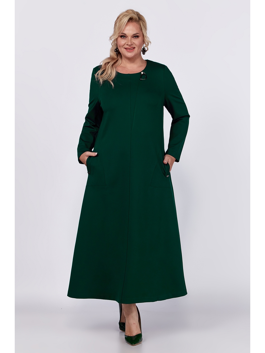 Платье женское больших размеров - это идеальный выбор для делового и повседневного образа. Оно трикотажное, теплое и с длинными рукавами, поэтому согреет Вас в осеннюю непогоду и создаст стильный и красивый вид. Классический строгий дизайн подчеркнёт Вашу женственность. Платье макси "в пол" выполнено из трикотажного полотна. Свободный крой и полуприлегающий силуэт делают его удобным и практичным для полных женщин плюс сайз. На полочке обработаны прорезные карманы с листочкой. Горловина изделия декорирована брошью. Не упустите возможность добавить к своей одежде базовую модель, которая станет дорогим шикарным элементом трендового модного образа!