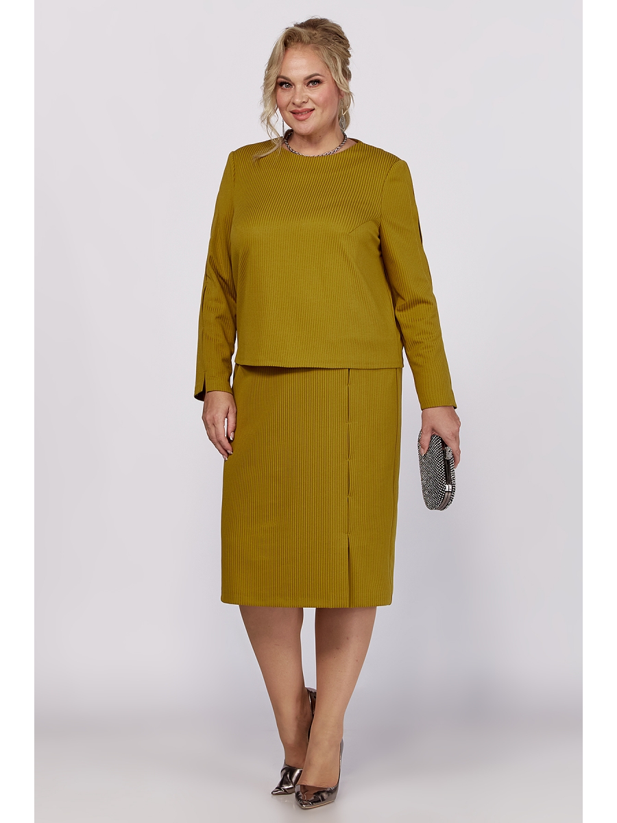 Элегантное, нарядно-повседневное  трикотажное  платье - необходимость женского гардероба. Платье полуприталенного силуэта из трикотажного полотна  - универсальное и практичное, длиной ниже колена. Внешне оно смотрится как костюм, потому что верхняя часть спинки и переда отлетные. Платье из такой ткани не сковывает движения, в нём вы будете чувствовать себя комфортно в течении всего дня. По среднему шву верхней части спинки обработана молния. На нижней части полочки обработана встречная складка с разрезом. Рукав втачной, декорированный встречной складкой и разрезом. Платье на трикотажной подкладке. Оно украсит Вас и зимой и весной. Шикарное платье отлично смотрится как деловое, так и молодежное, и классическое.