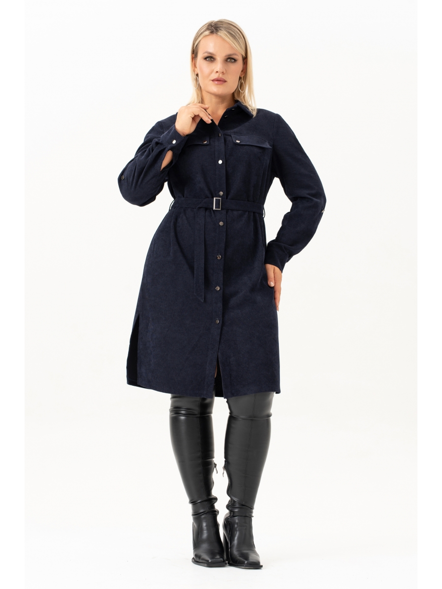 Повседневное женское платье рубашка из вельвета -это сочетание стиля, строгости и утончённости. Спинка со средним швом и разрезами по низу. Универсальное и практичное платье длиной ниже колена, которая будет уместна для любого случая. По переду платья есть нагрудные выточки от пройм и настроченный клапан, который украшен декоративными пуговицами.Также есть карманы в боковых швах. Рукав втачной, длинный, по низу с манжетой и патами. В дополнении к платью идёт пояс . Застёжка спереди на петли и пуговицы на цельнокроеных планках и стояче -отложным воротником на отрезной стойке. Этот вариант вельветового осеннего платья идеален для женщин любого возраста и подходит для любого повода: как деловое на работу, в офис, как нарядное. Женское платье рубашка из штрукса - это отличная базовая модель, которая должна быть в гардеробе каждой девушки.