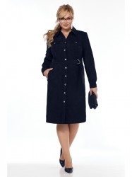 Современное вельветовое платье в стиле сафари — отличный выбор для Вашего гардероба в любое время года. Платье слегка расширено к низу. На переде обработаны кокетки, два кармана c листочками в швах, два накладных кармана с клапанами в области груди, застёжка на 8 петель и пуговиц. Спинка с кокеткой и средним швом. Боковой шов с полукруглыми разрезами внизу. Рукав втачной, двухшовный, с разрезом в локтевом шве, по низу с заложенными складками и манжетой на пуговице. Воротник стояче-отложной со стойкой. Металлическая фурнитура может незначительно отличаться от представленной на фото.