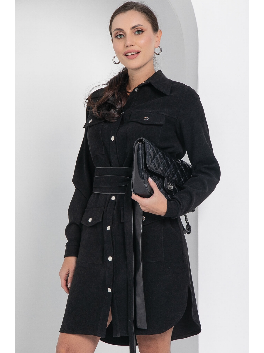 Позвольте вашему стилю преобразиться с этим великолепным платьем-рубашкой, выполненным из микровельвета в свободном прямом силуэте. Это платье станет неотъемлемой частью вашего гардероба, благодаря своему универсальному дизайну и комфортному материалу. В комплект входит двухсторонний пояс-кушак, одна сторона которого выполнена из экокожи, а другая — из того же материала, что и само платье. С его помощью вы сможете подчеркнуть талию и создать разнообразные образы, экспериментируя с различными стилями.