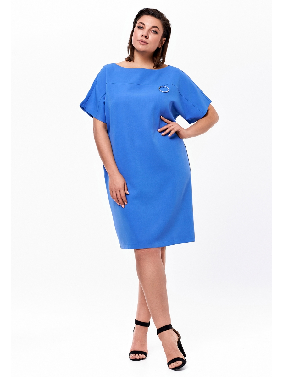 Оформить заказ →Платье женское свободного кроя, прямого силуэта с цельнокроеным рукавом. Горловина – лодочка.На левой стороне переда декоративное металлическое кольцо. Спинка с фигурным вырезом, украшена металлическими кольцами.