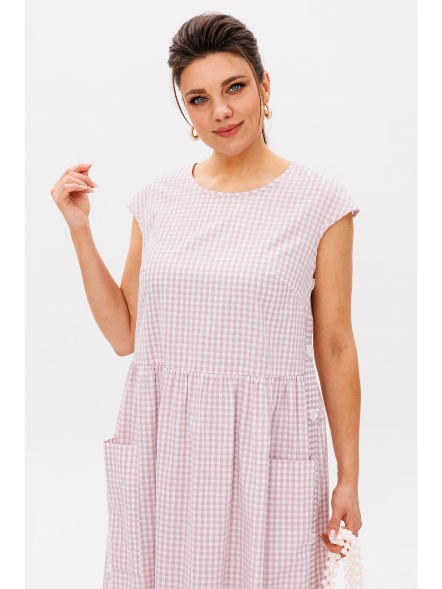 Отрезной крой по талии деликатно подчеркивает силуэт, а декоративные петли с пуговицами по бокам придают платью изящную деталь, делая его интереснее. Воздушная миди-длина удобна для прогулок и отдыха, а натуральная ткань позволяет коже дышать даже в самый теплый день.