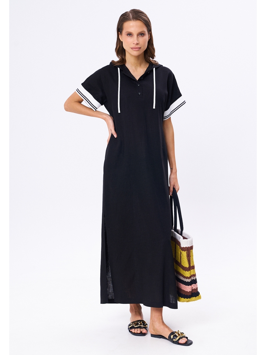 Оформить заказ →Свободное, прямое платье с капюшоном. Спущенный рукав отделан эластичным довязом в полоску. По переду застёжка в виде планки с пуговицами. В боковых швах карманы и разрезы.