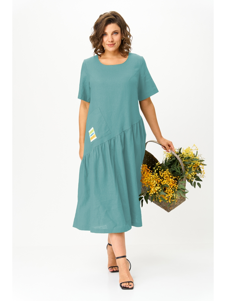 Свободное легкое женское платье из льна - идеальный вариант в жаркую погоду для офиса, прогулки или праздничного выхода. Достаточно обыграть его подходящими аксессуарами и обувью. Платье прямого силуэта, с отрезным косым воланом, со сборкой. Объём по груди создается за счет выточек из проймы. Платье подойдет на любую фигуру, сроет все недостатки. По переду идет накладной карман с нашивкой.