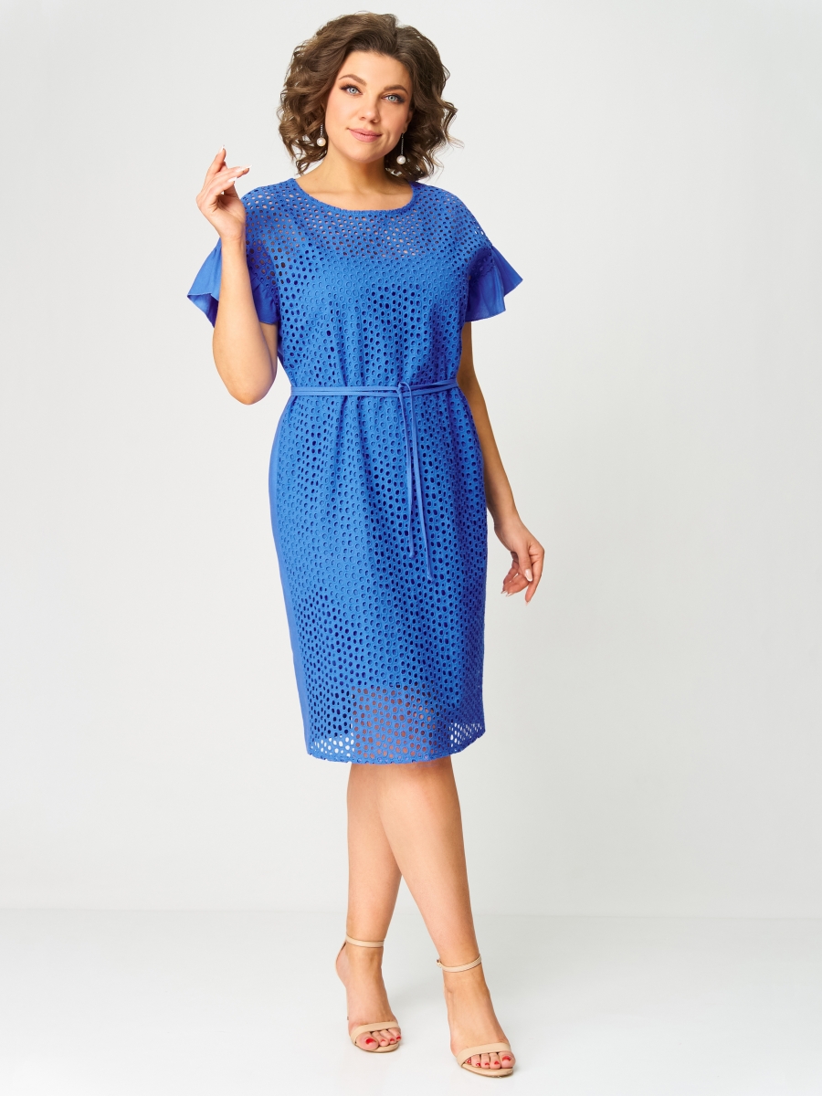 Оформить заказ →Платье полуприлегающего силуэта. Перед платья выполнено из хлопка «ришелье» на хлопковой подкладке. Спинка выполнена из лена, спинка с таллиевыми вытачками и средним швом. Застежка сзади на потайную тесьму-молнию. Рукав – крылышко слегка присборено из льна. Имеется съемный пояс.