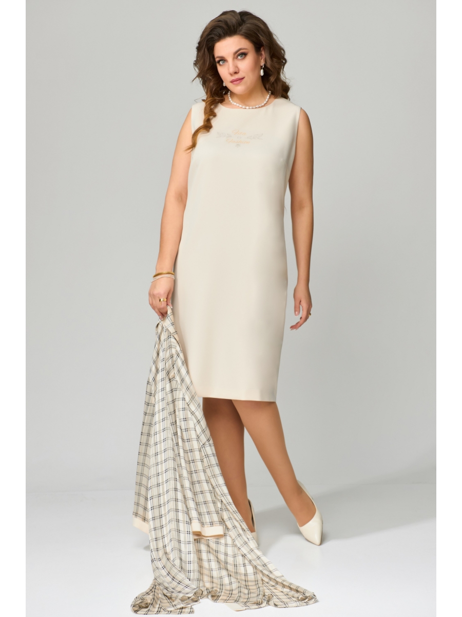 Платье "Гарца" из костюмно-плательной ткани. Платье прямого силуэта с выточкой на груди, по спинке потайная молния и шлица. Горловина и проймы обработаны обтачкой. На полочке возле горловины декоративная печать. Низ платья обработан потайным швом в подгибку.