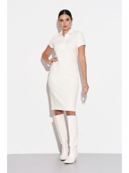 Классическое женское платье-поло полуприлегающего силуэта со втачными рукавами, с отложным воротником и застежкой-планкой на кнопки. Изделие выполнено из мягкого высококачественного трикотажа с содержанием вискозы, воротник и планка - из джинсовой ткани. При правильном уходе ткань не скатывается и не усаживается.