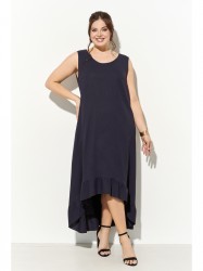 Женское платье А-силуэта выполнено из натурального льняного полотна с карманами в боковых швах; линия низа ассиметричной формы с присборенным воланом. Платье полностью соответствует заявленному размеру.