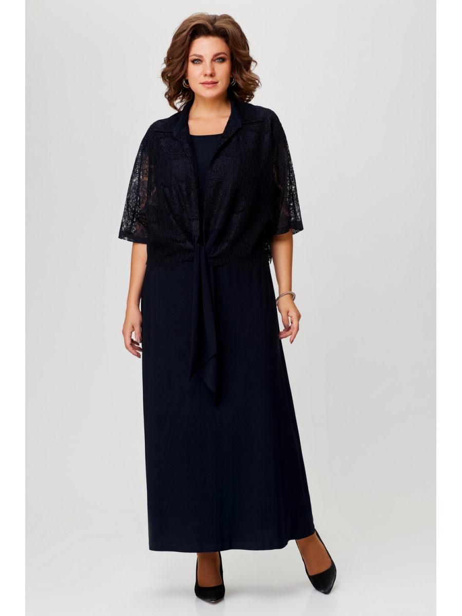 Платье женское полуприлегающего силуэта расширенное к низу. Горловина и проймы обработаны косой бейкой. По лини груди вытачки. Спинка отрезная по линии талии, со средним швом и вытачками по линии талии.